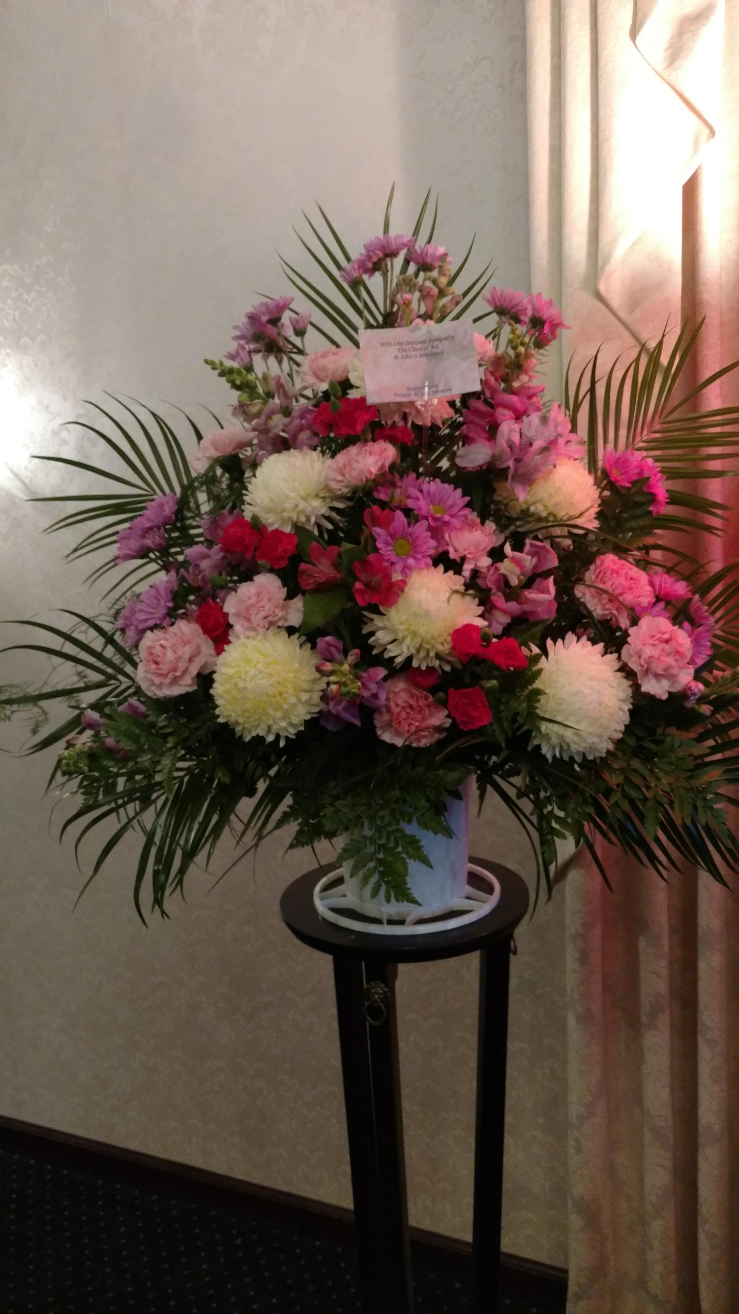 funeral on October 5th at St Mary's in Brookline (provided courtesy of The Pilot). The flower arrangement in front of the altar is from